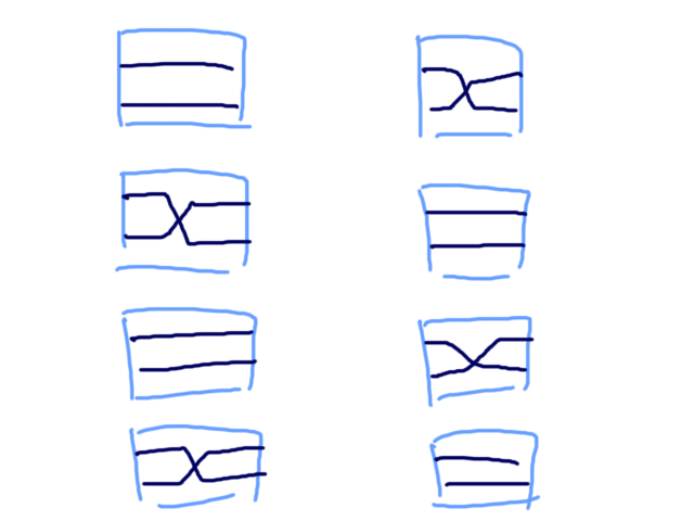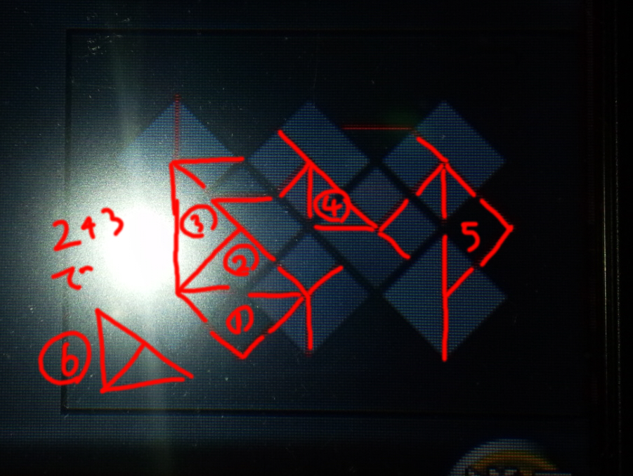 なので時計の配置と中心を通るかで組み合わせが決まるので左上の数字と合わせると