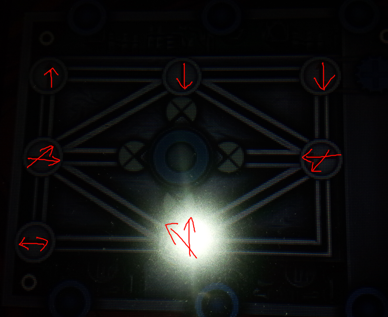 外すと押しながらじゃないと見えない回路が出てくるので、下のパネルに続いているものだけを点ける。
