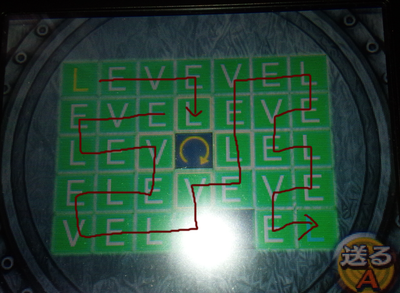 スライダに逆時計回りの絵が描いてあるので右下から反時計回りに読むと